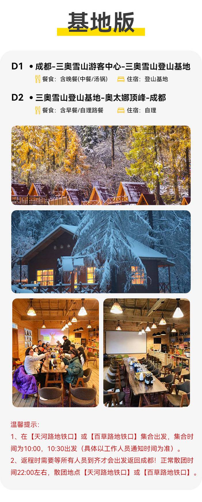 关于向导比的说明:作为三奥雪山景区安全生产主体责任单位,我方切实承担户外爱好者的安全保障义务,将根据攀登线路的承载量、天气因素综合考量。向导协作统一采用固定点位站岗+随队保障+救援队巡逻的形式,因此不再以传统的“1:N”形式安排向导。