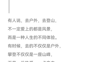7.在户外运动中应充分考虑安全因素,不能因景色太好而忽略安全,在住宿地最好不要夜间单独出门。
