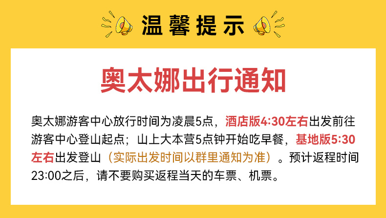 特别提醒:奥太娜登山活动由景区统一管理,向导定点式站位服务。