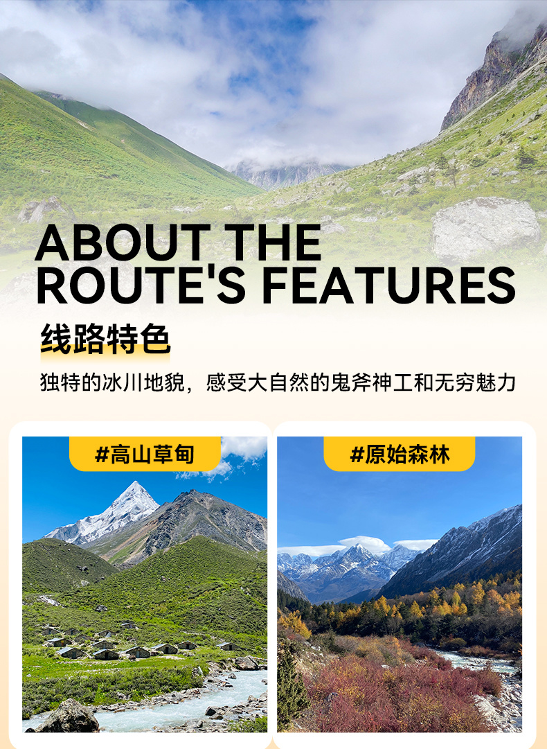 车程较长,晕车伙伴提前准备好晕车药物,当天海拔变化大,温差较大,请提前准备好徒步期间所需衣物等物品在身边。