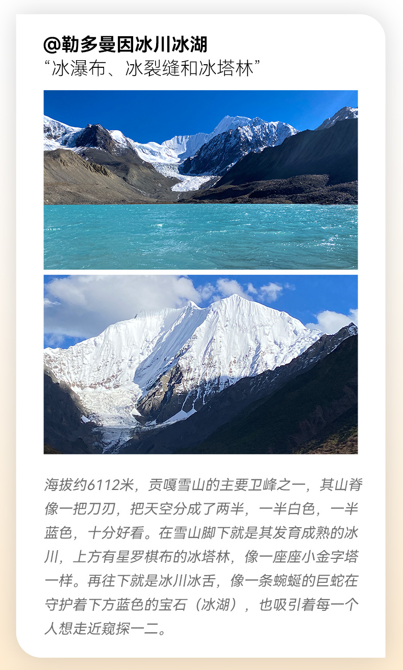 ▷海拔:勒多曼因冰川约4700M,成都约500M