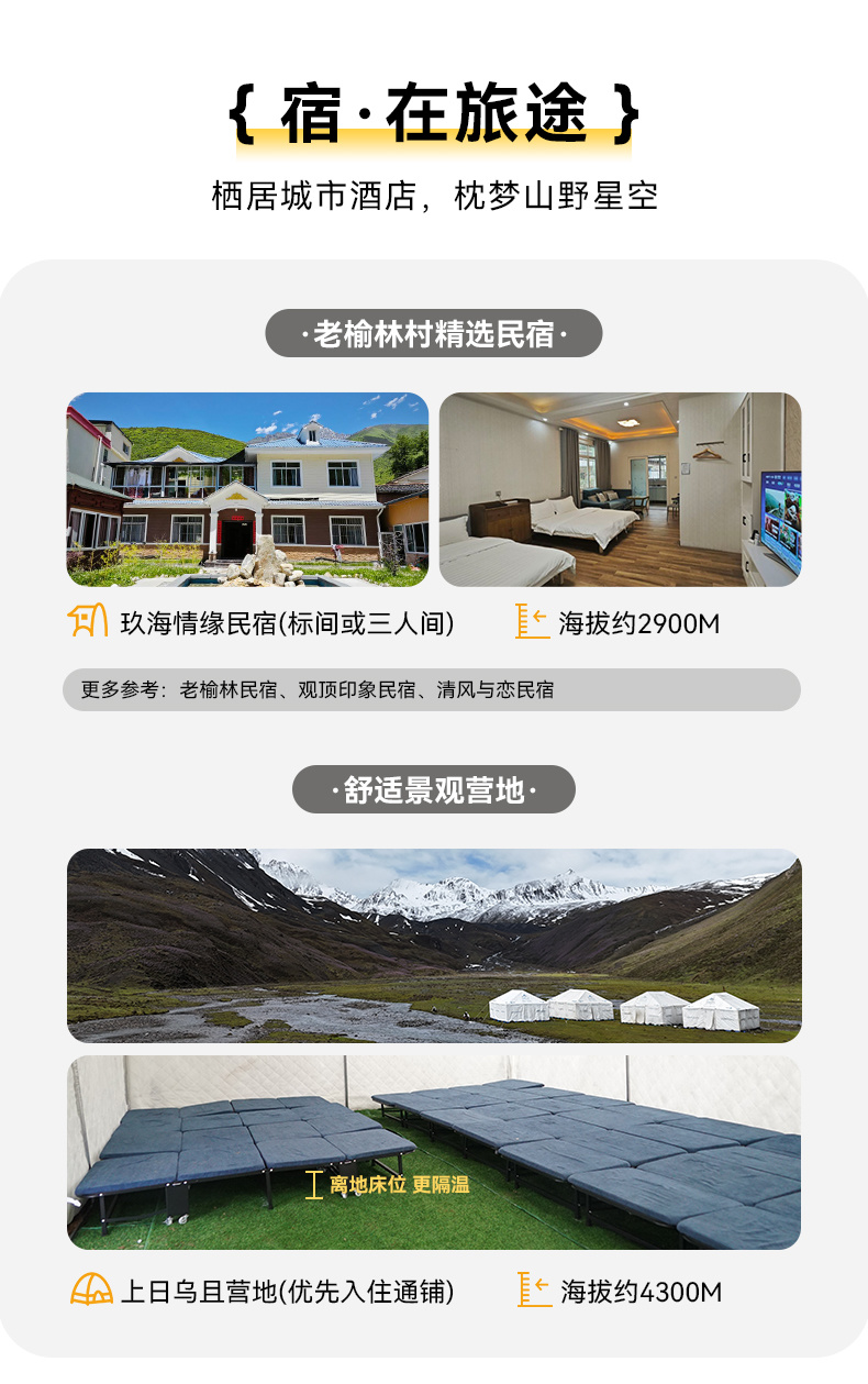 ▷住宿:上日乌且营地(优先入住通铺)