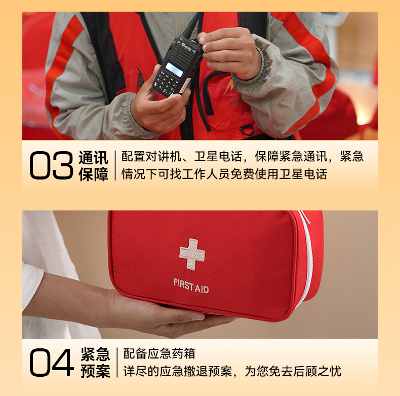 特别声明:工作人员因没有医疗资质,随车只提供瓶装氧气,提供常规感冒药品等,无其他特殊药品,请提前备足适合自己的药品。