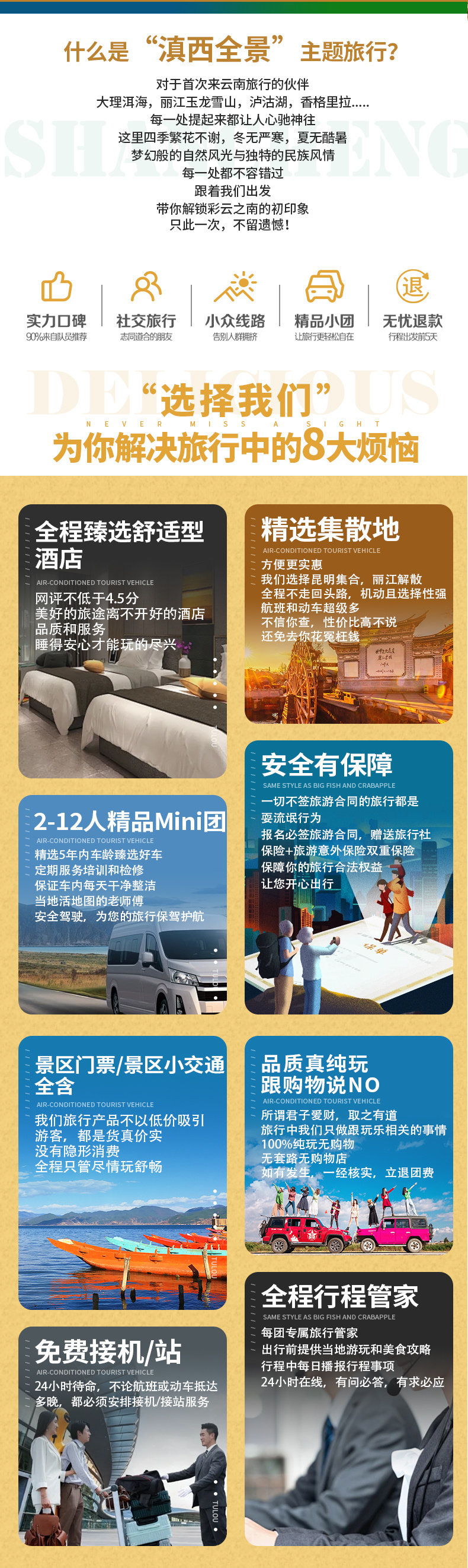 ▷交通:不包含各地到达昆明集合、丽江散团的往返大交通费用(如:机票和高铁火车票等,提前预定通常折扣都会很低);