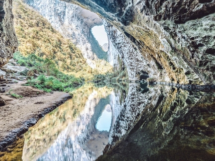 早餐后,乘车出发前往大圣之眼。抵达徒步起点简单热身运动后开始徒步行程,穿越天坑、崖洞、溶洞、地下河谷。