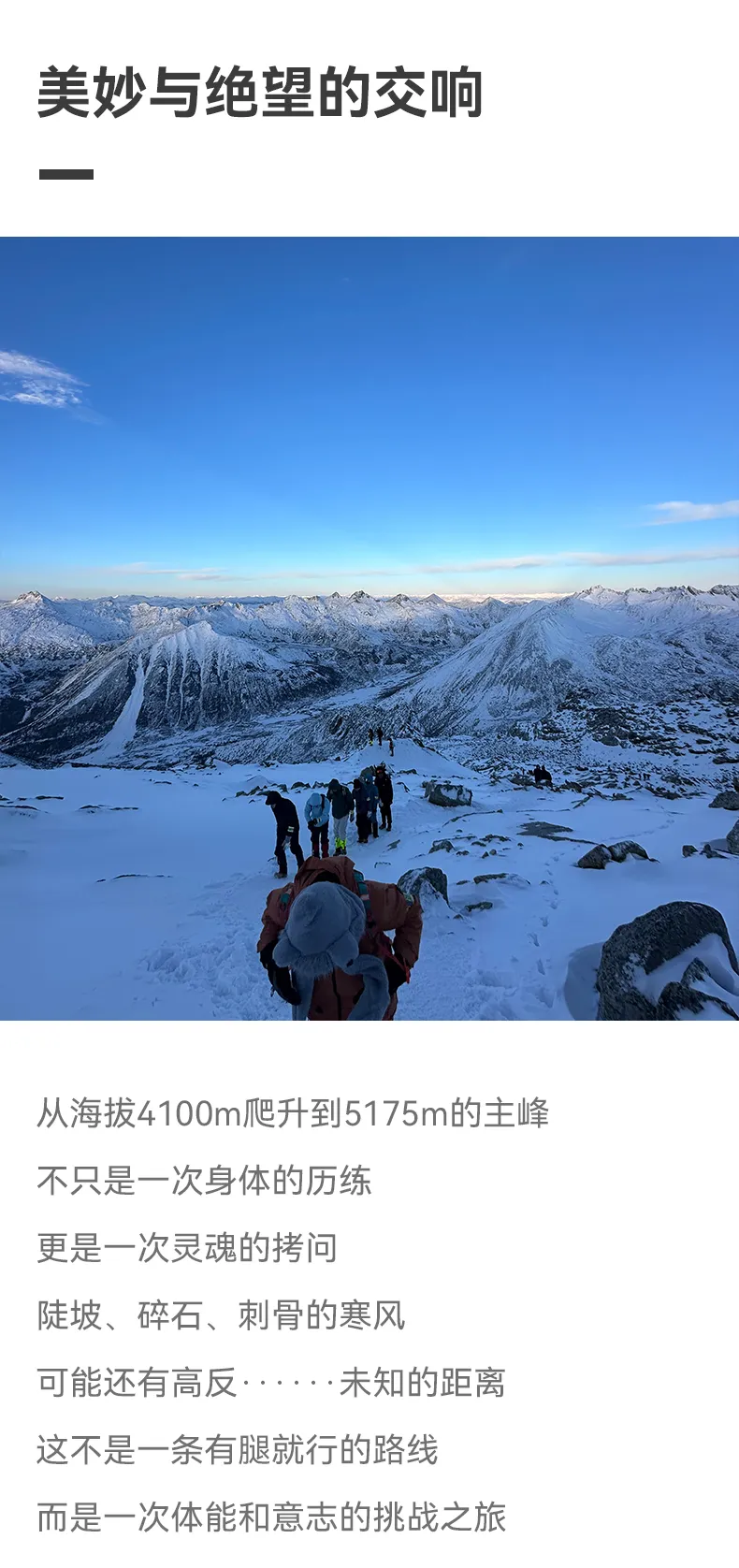 4.专业登山向导带队,10人以上配专业高山领队全程跟队。