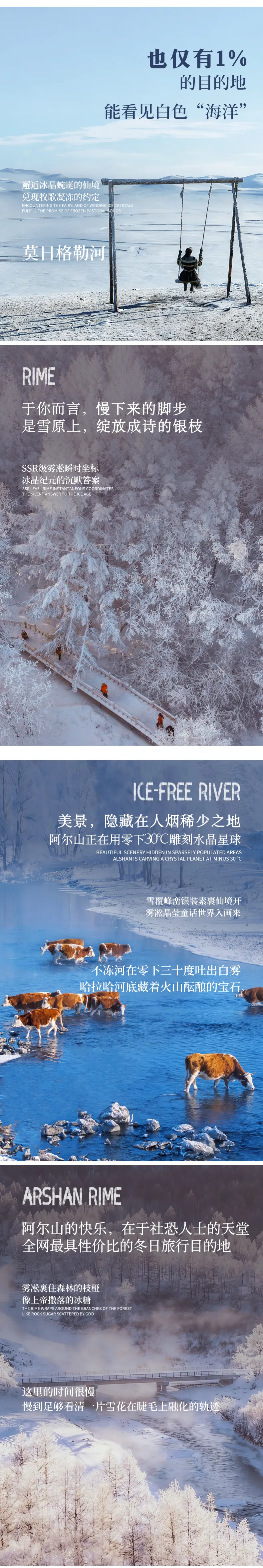 3. 门票:阿尔山鹿园、阿尔山雪村。