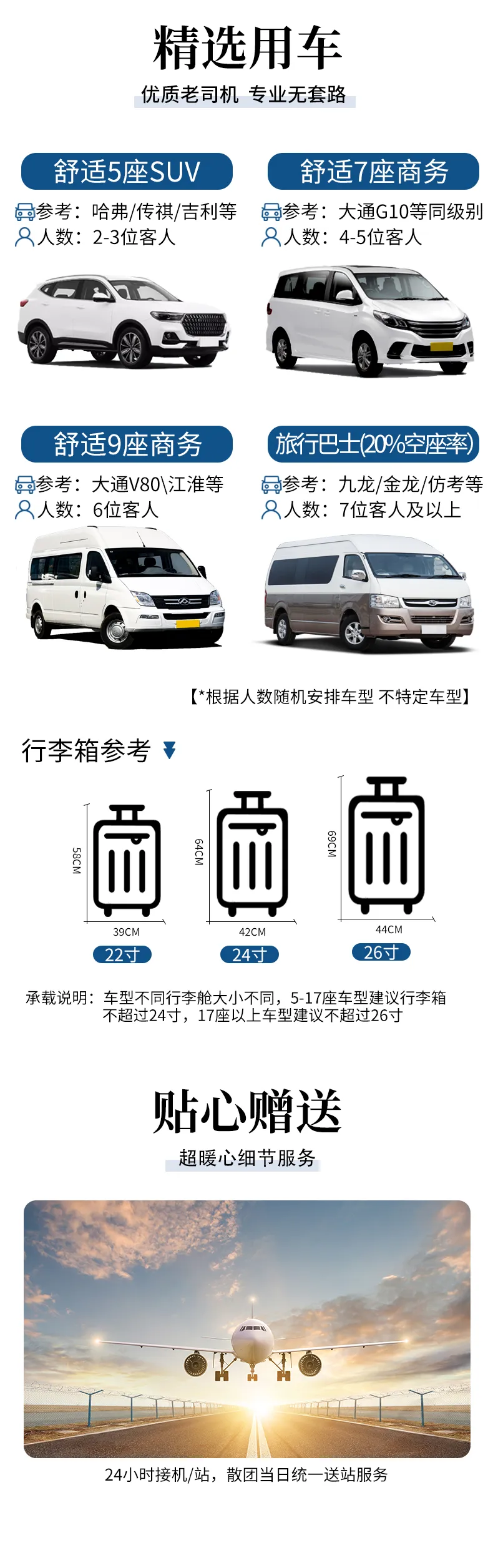 tips:用车仅以客人人数为标准,不包含司机、领队。
