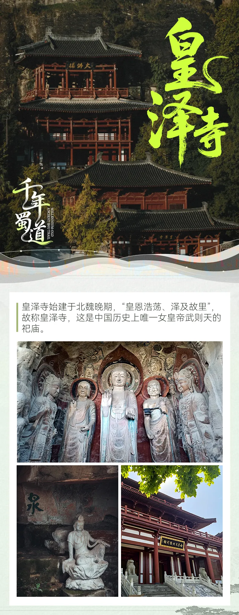 第5天:昭化古城-千佛崖-皇泽寺-广元高铁站/广元机场完团,无费用退。