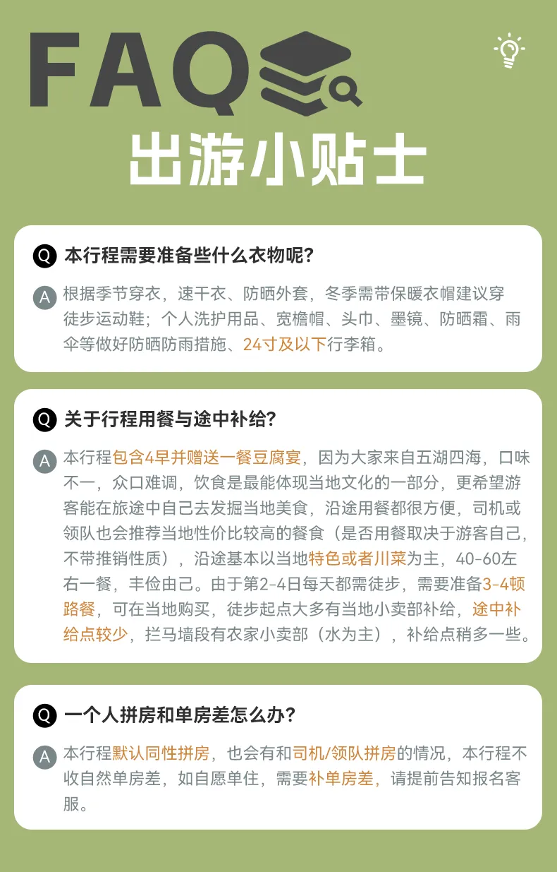 1、本活动属于户外旅行活动,纯玩,全程不进购物店、没有任何形式购物环节,领队也不做购物推荐,敬请谅解。