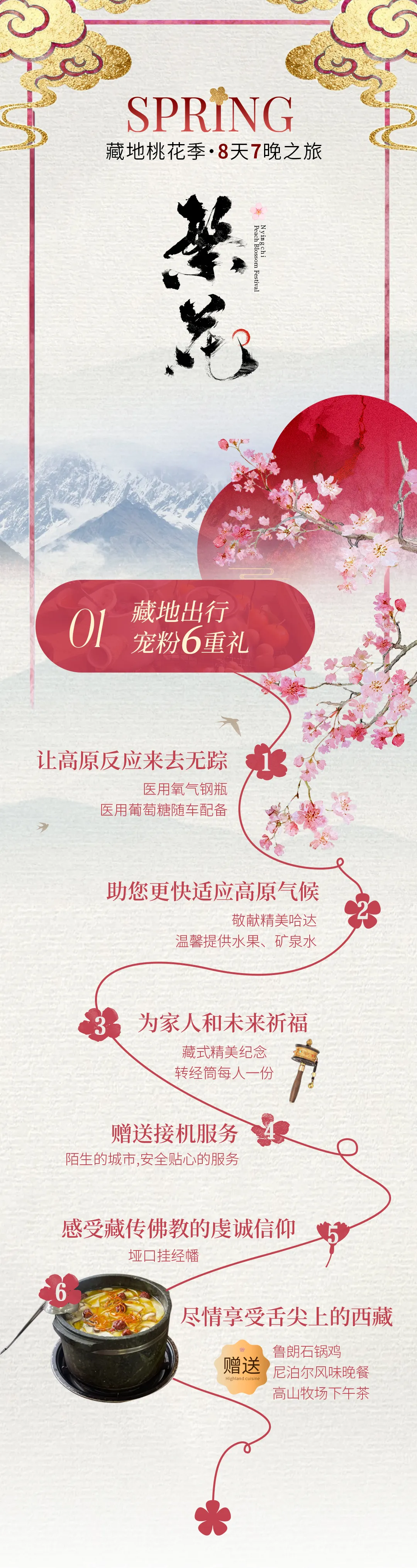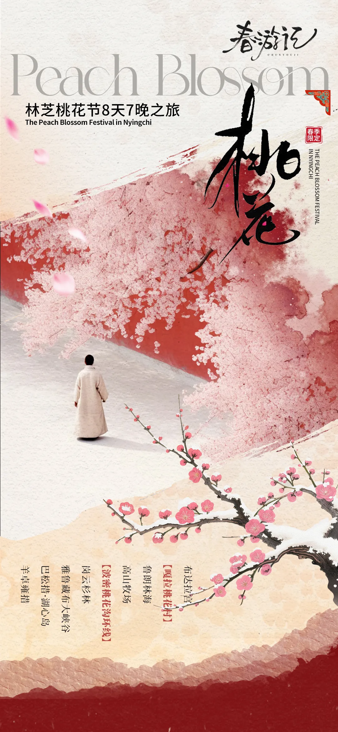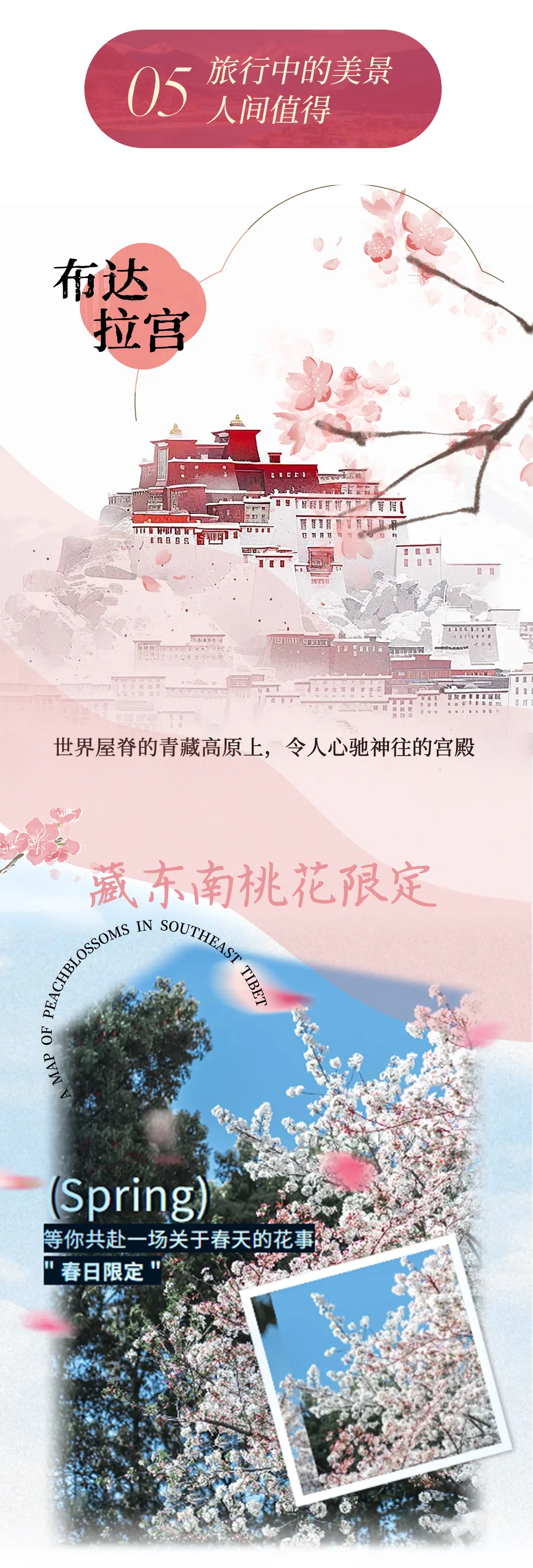 备注:针对3月29日、4月5日两个排期的报名游客,我们将调整游览顺序,先行前往林芝赏景,之后返回拉萨参观布达拉宫。