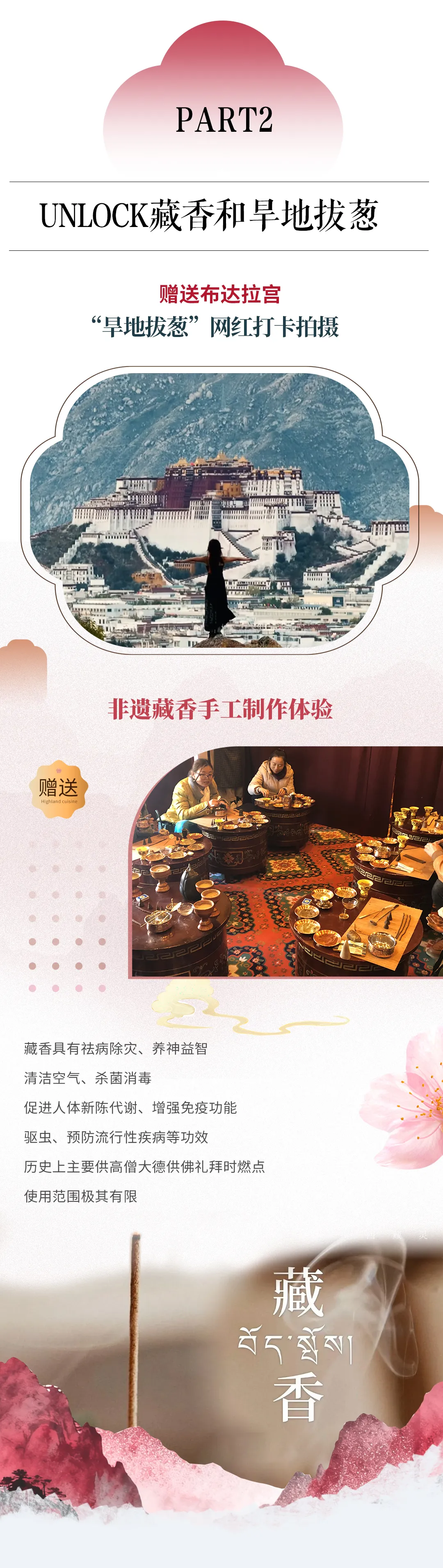 (1)赠送非物质文化遗产手工藏香制作&布达拉宫“旱地拔葱"拍摄;