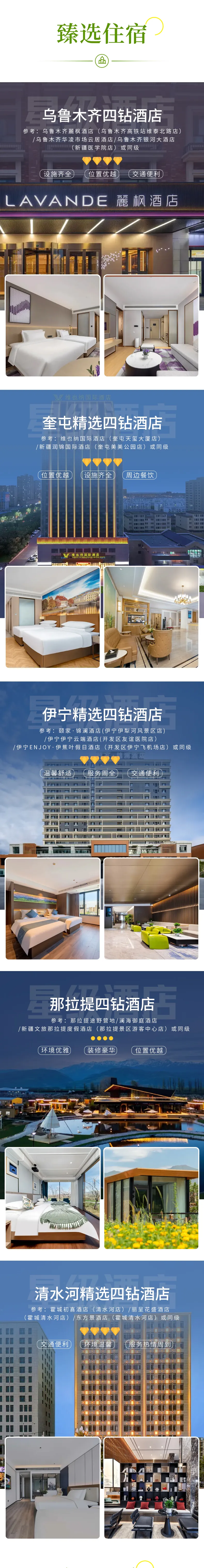 备注:钻级标准参考携程钻级标准,未挂星。新疆经济较为落后,酒店较南方酒店略差,敬请谅解;