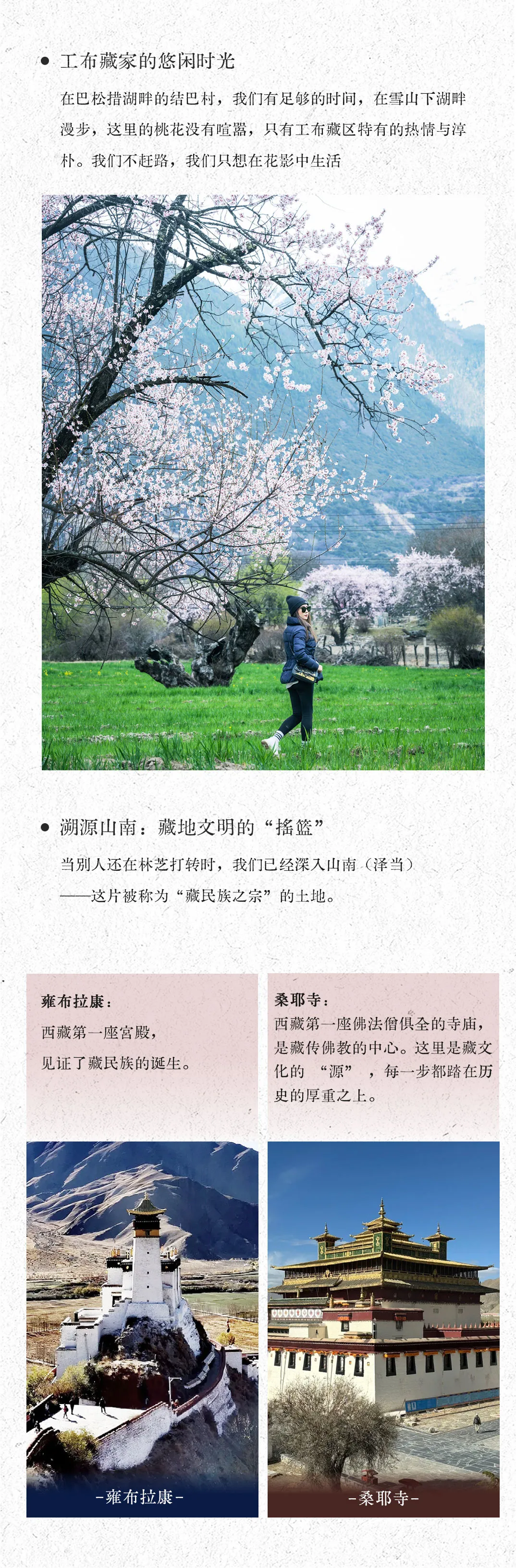 D4:两个湖畔的桃花与藏文化起源地:多布湖晨曦-巴松措深度游(环湖栈道-遗忘码头-结巴村-错高村)-西藏第一座宫殿雍布拉康-山南泽当镇