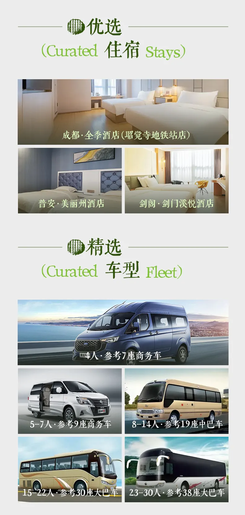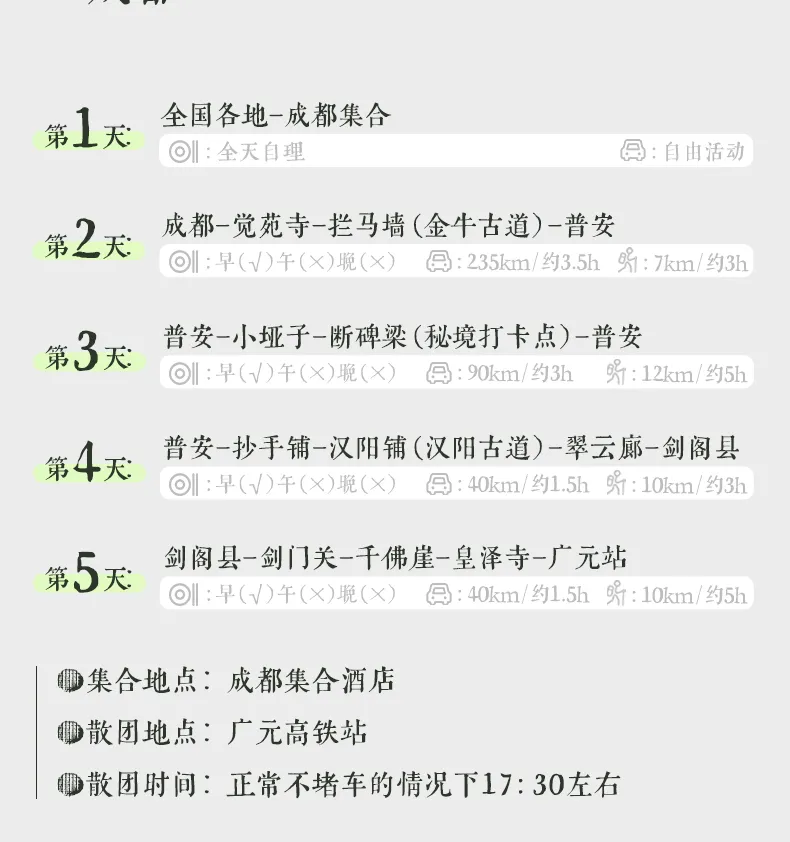 住宿:按行程所列标准入住(详情请参见行程安排,单独参加我们活动,默认与其他同性拼房):成都1晚,普安2晚,剑阁1晚;
