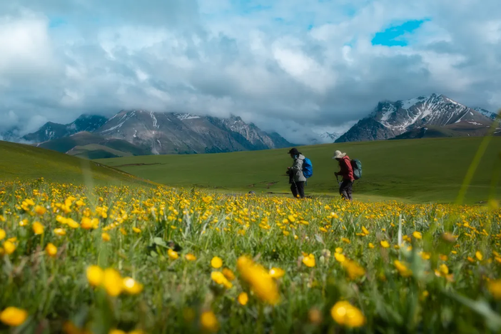 春季 | 4-5月 | 0~15℃ / -5~5℃ | 春季是新疆徒步的开端,山区的积雪逐渐消融,河谷与草原开始返青,各种野花如顶冰花、蒲公英悄然绽放。但此时山区昼夜温差大,高海拔区域仍有积雪,部分路段可能有融雪性洪水,需注意天气变化和路况。 |
