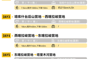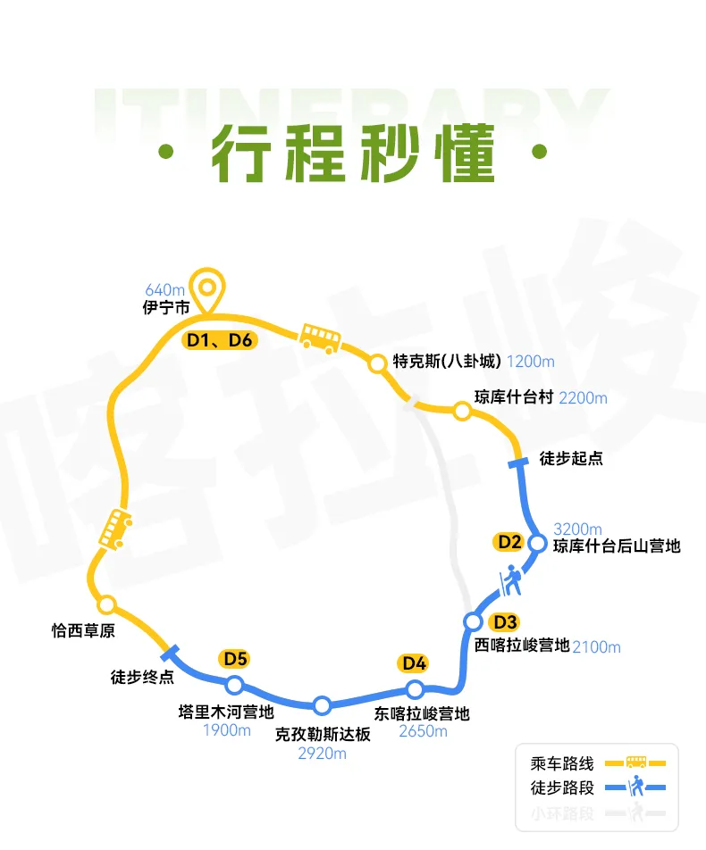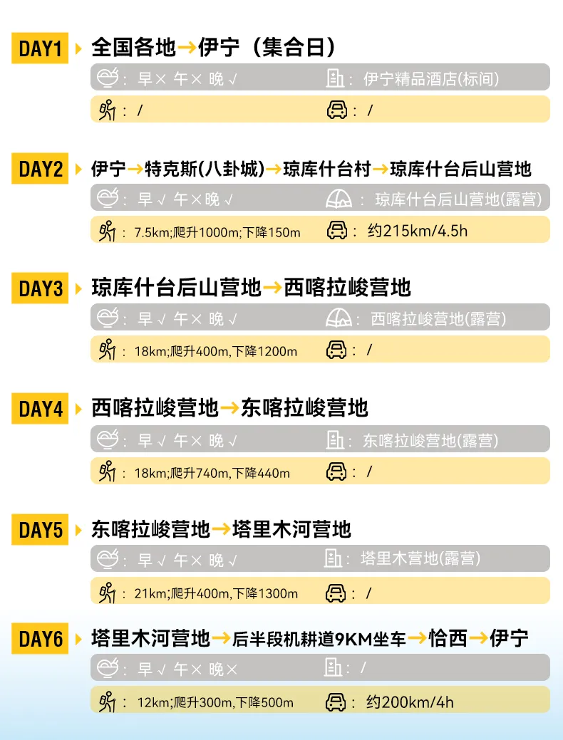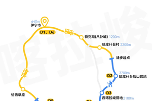 2.在特克斯县城请及时补充物资(干粮等高热量的食物补充体力,全程午餐均为路餐,请依据自身情况合理补充)。