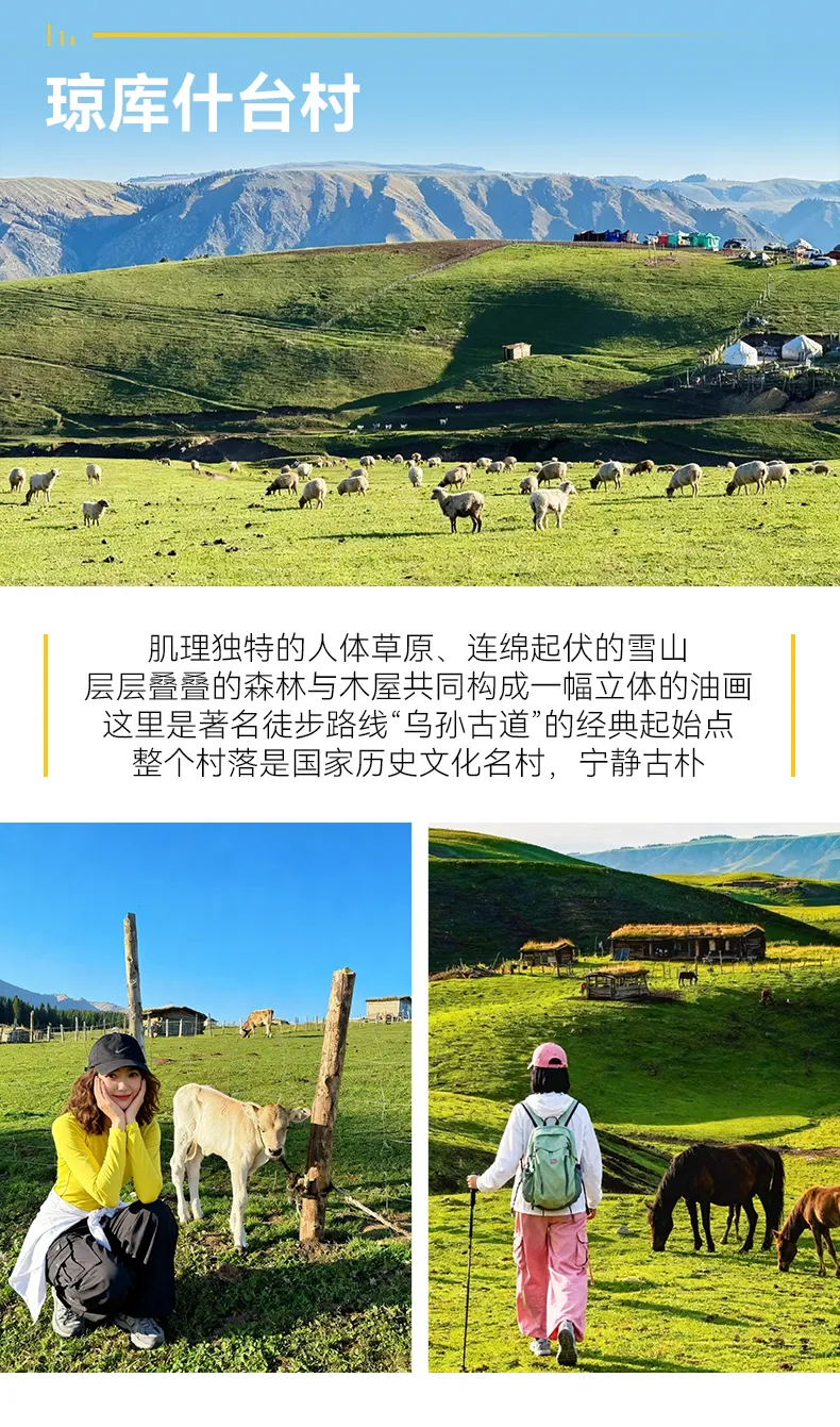 D2伊宁-(车程约215km,时间约4.5h)琼库什台-(徒步约7.5km,约4h)琼库什台后山营地