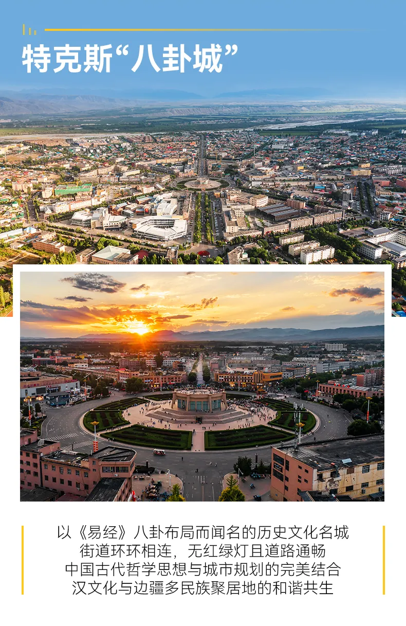 行程概览:早餐后酒店大厅集合出发(约8:00-9:30),我们乘车前往著名的八卦城--特克斯县,县城以中心八卦文化广场为太极“阴阳”两仪,按八卦方位以相等距离、相同角度如射线般向外伸出“乾”、“兑”“震”、“巽“坎”、“良”、“坤”八条主街,它是现今世界上惟一一座保存良好、卦爻完整、规模最大的八卦城。八卦城是本次行程最后一个大的补给点,随后前往国家历史文化名村——琼库什台村,一路翻山越岭,然后到达琼库什台后山营地,在这里可以尽情欣赏着高山湖泊带来的风景,如画般静谧。