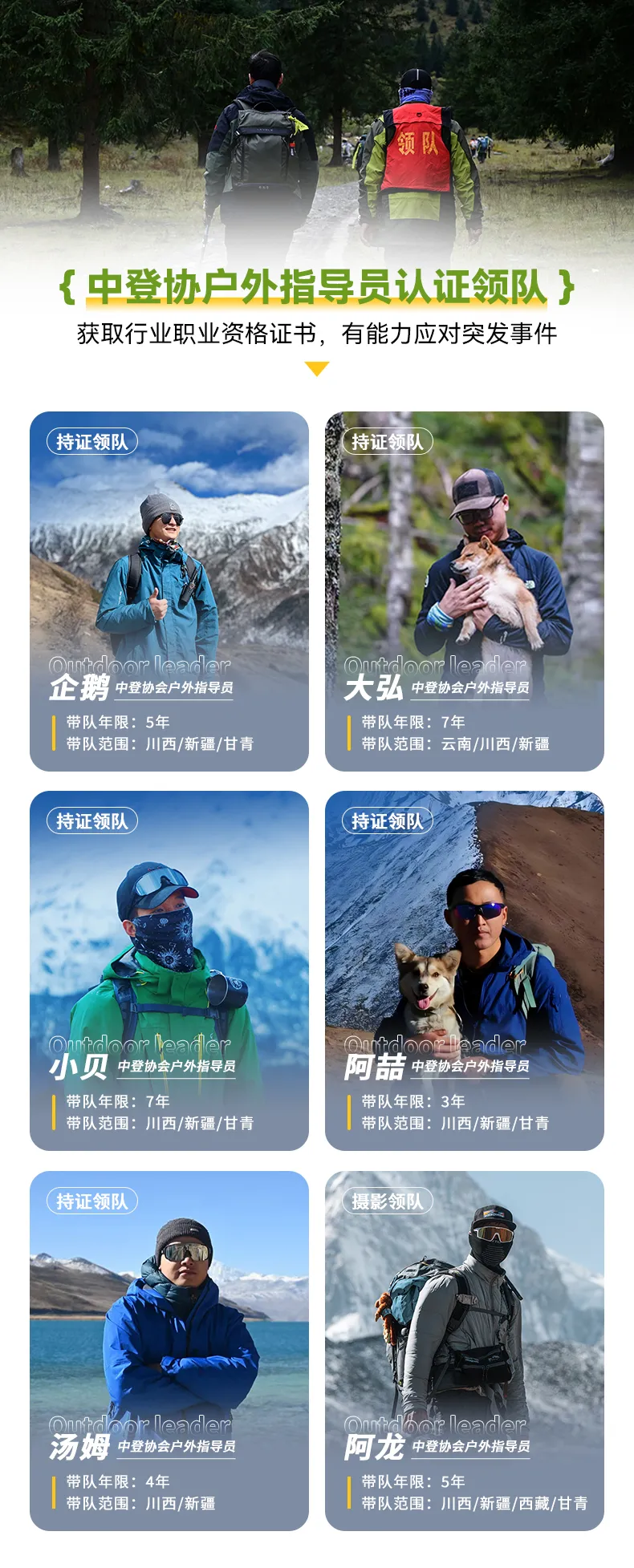 ● 专业户外工作人员,领协比1:8。