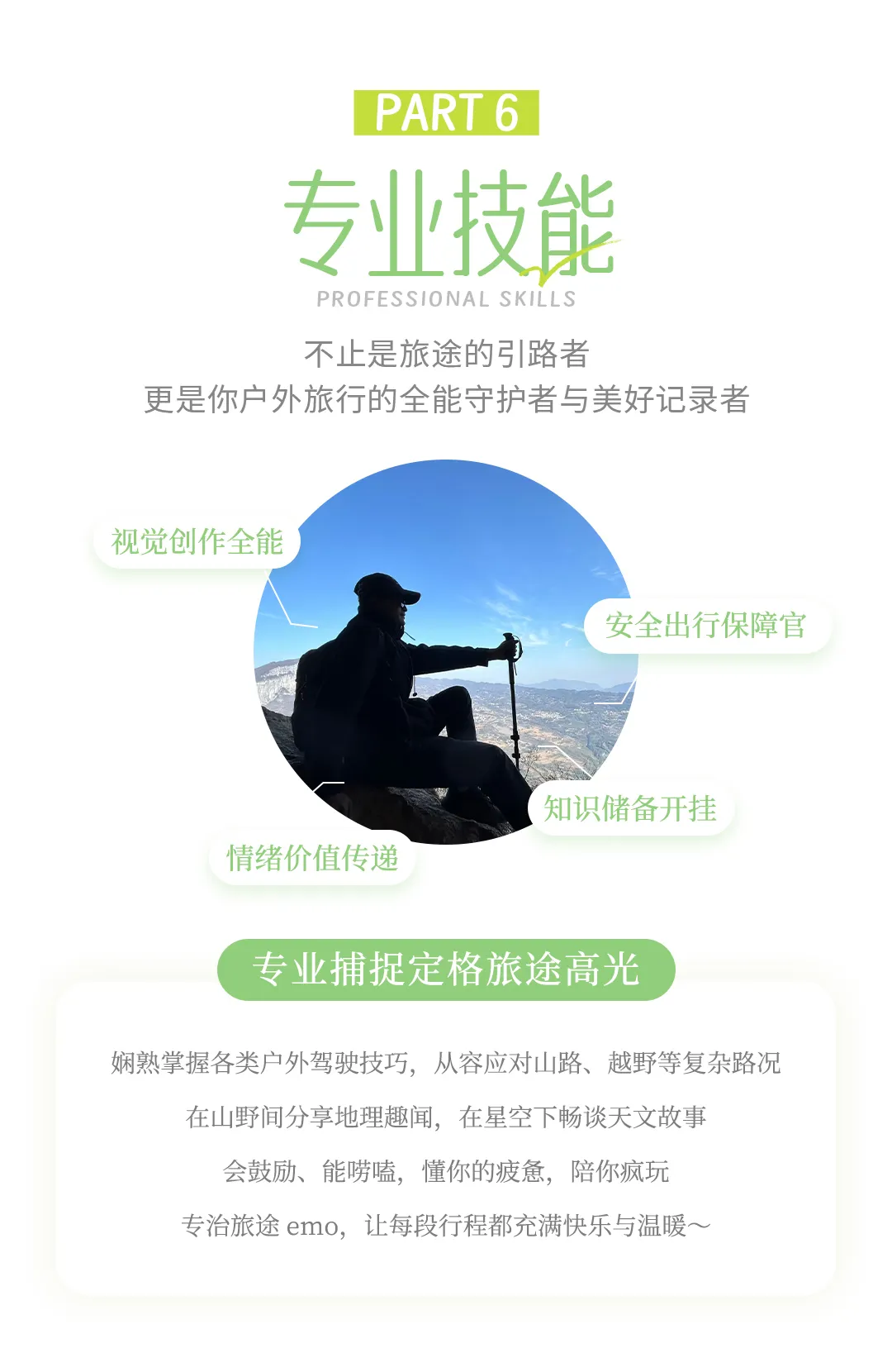 (4)夜路:原则上坚决不走夜路,但因为路况和天气情况复杂,偶尔会出现走夜路的情况。如果队员拒绝走夜路,要临时住宿,所产生当天已经定好的住宿费用不退,新产生的住宿费用队员自己承担。如果需要延长行程,所延长行程的相关费用也由队员承担;