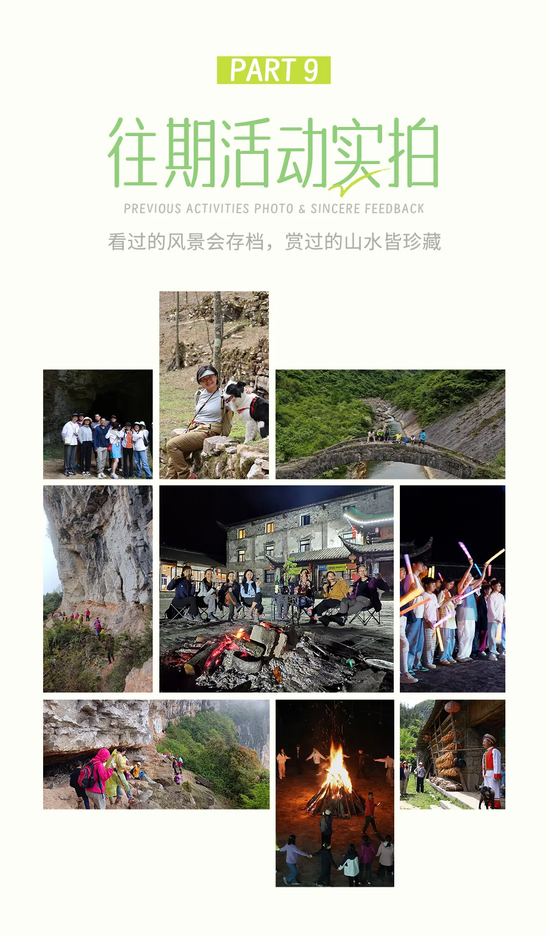 - 安全提示:徒步路线部分,靠近悬崖边,需注意安全,遵循领队指挥或按照沿途标记行走。山路崎岖,要合理安排时间,跟着领队赶在天黑前下山!