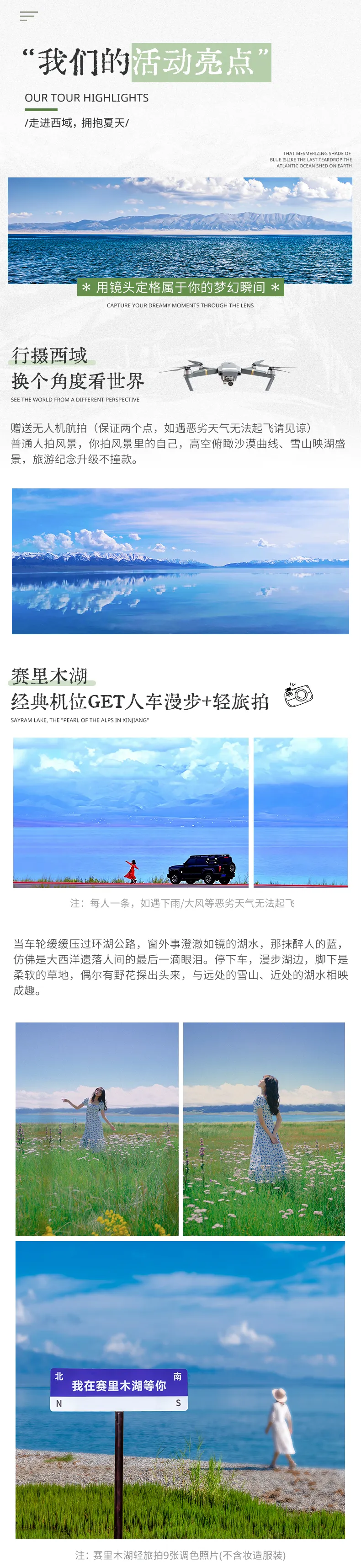 2. 赠送赛赛里木湖人车漫步视频(如遇下雨/大风等恶劣天气无法体验);