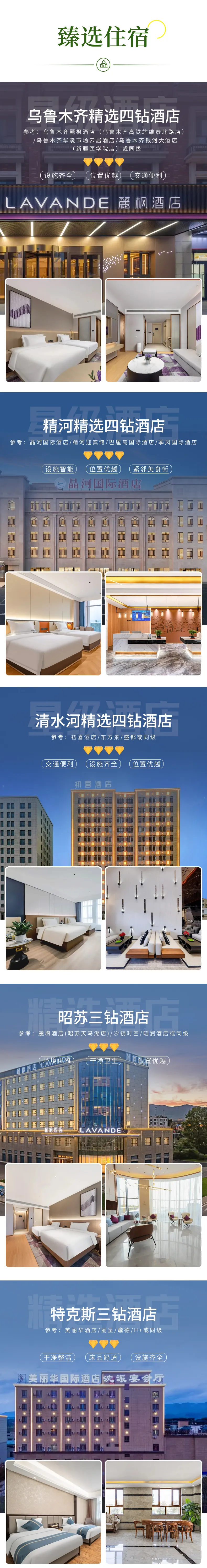备注:钻级标准参考携程钻级标准,未挂星。新疆经济较为落后,酒店较南方酒店略差,敬请谅解;